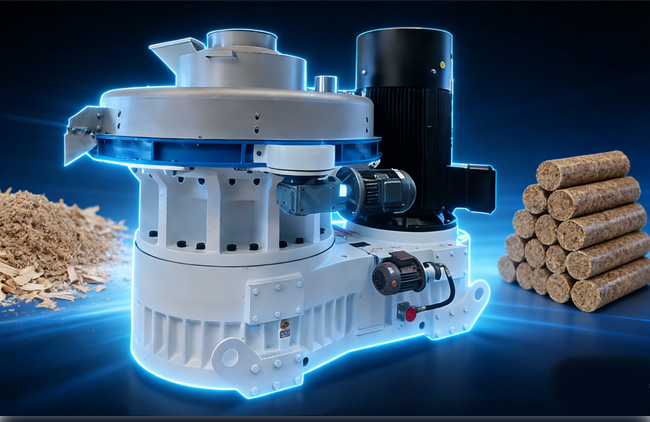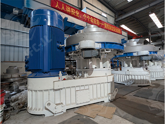 Vertical ring die pellet mill uses a large-module hardened helical gear reducer, providing strong power output, stable output, low failure rate, and low production cost, making it particularly suitable for biomass pelletizing.