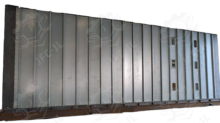 The hydraulic silo is mainly composed of a gantry frame, sliding main beam, movable material shifting fins, fixed material shifting fins, hydraulic cylinder, hydraulic station, auger discharge system and silo body.